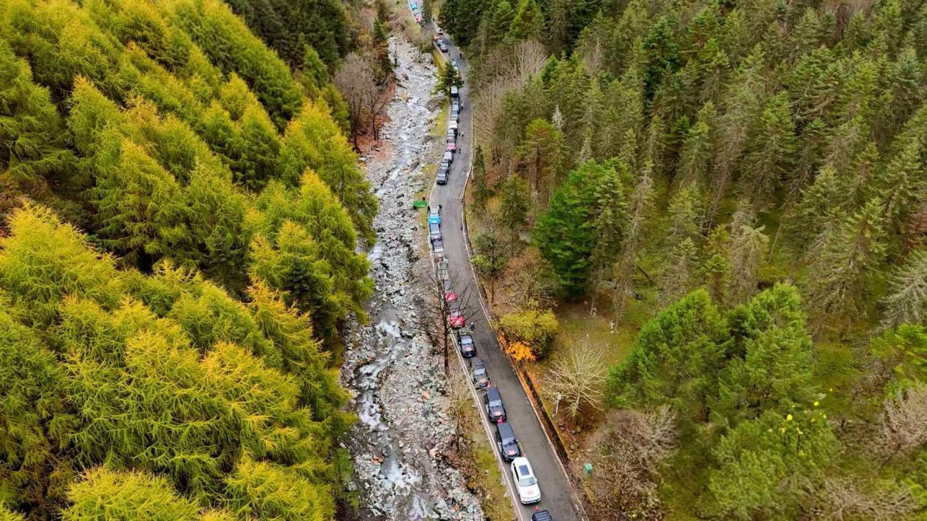 在穿越巡游階段,150輛越野車在大本營集結,組成一條震撼的長龍,開啟穿越巡游活動,前往雅安市寶興縣參加楓葉節(jié)開幕式,沉浸式體驗神木壘景區(qū)、到鄧池溝與大熊貓相約、走進藏寨體驗加絨藏族民俗文化,全方位感受雅安的好山好水好風光。