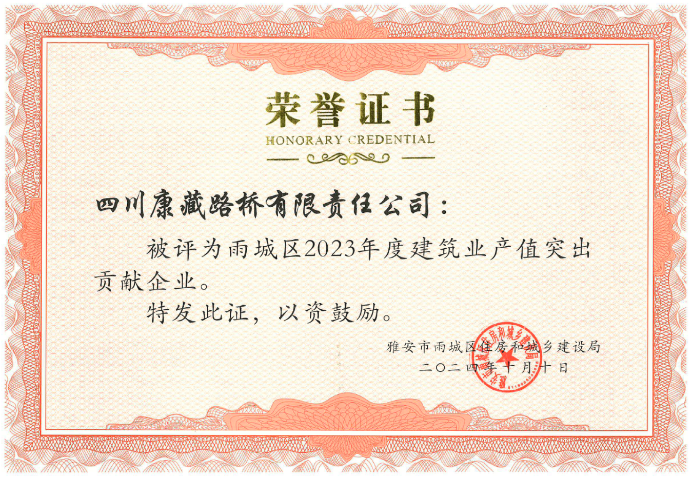 今年10月,路橋公司被雅安市雨城區(qū)住房和城鄉(xiāng)建設(shè)局評(píng)為“雨城區(qū)2023年度建筑業(yè)產(chǎn)值突出貢獻(xiàn)企業(yè)”。下一步,路橋公司將持續(xù)貫徹落實(shí)市委、市政府決策部署,把學(xué)習(xí)貫徹落實(shí)黨的二十大精神與生產(chǎn)經(jīng)營(yíng)工作結(jié)合起來(lái),發(fā)揮項(xiàng)目引領(lǐng)支撐作用,為地方經(jīng)濟(jì)的發(fā)展持續(xù)貢獻(xiàn)力量。