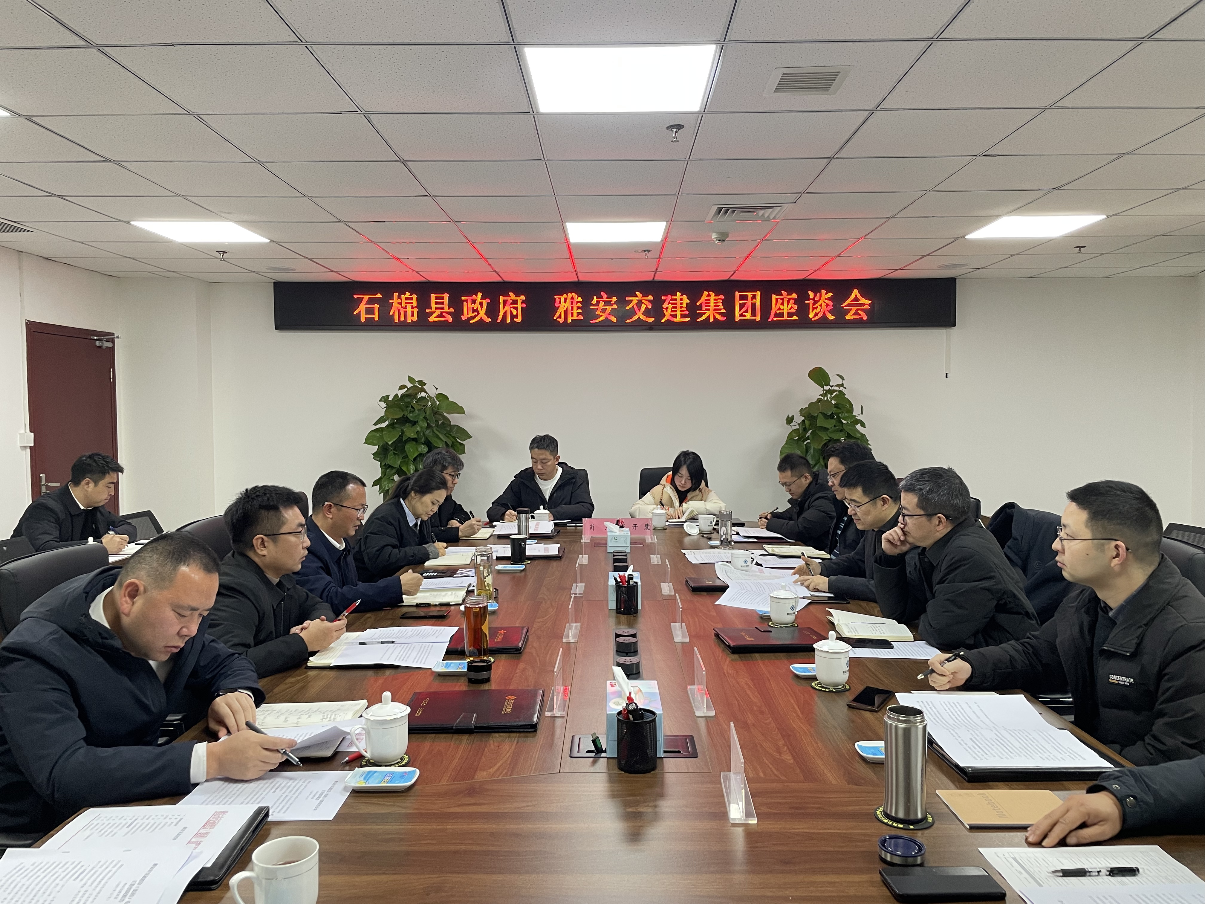 12月24日,石棉縣人民政府副縣長曹冀帶隊赴雅安交建集團開展工作座談?h發(fā)改、交通、住建、財政等部門負(fù)責(zé)人;交建集團黨委副書記、總經(jīng)理趙飛勇,黨委委員、副總經(jīng)理丁春、鐘焱宇,路橋公司、項管(川康)公司、建管部、投發(fā)部負(fù)責(zé)人參與座談。