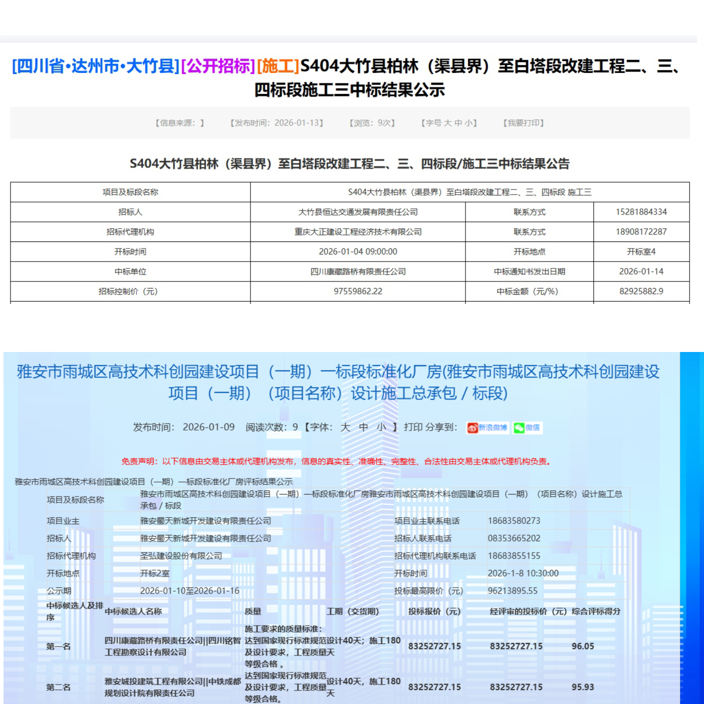 其中,S404大竹縣柏林(渠縣界)至白塔段改建工程中標金額8292萬元,工期24個月;雅安市雨城區(qū)高技術(shù)科創(chuàng)園建設(shè)項目(一期)中標金額8325萬元。此次連續(xù)中標,是康藏路橋公司深入落實“走出去”發(fā)展戰(zhàn)略、積極拓展外部市場的重要成果,標志著公司在跨區(qū)域經(jīng)營方面邁出實質(zhì)性步伐,進一步鞏固了在公路改建和園區(qū)建設(shè)領(lǐng)域的專業(yè)優(yōu)勢與市場地位。