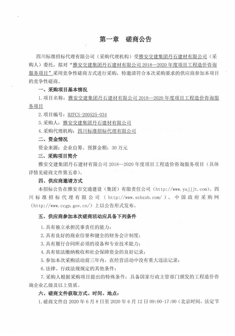 雅安交建集團丹石建材有限公司2018—2020年度項目工程造價咨詢服務項目競爭性磋商公告