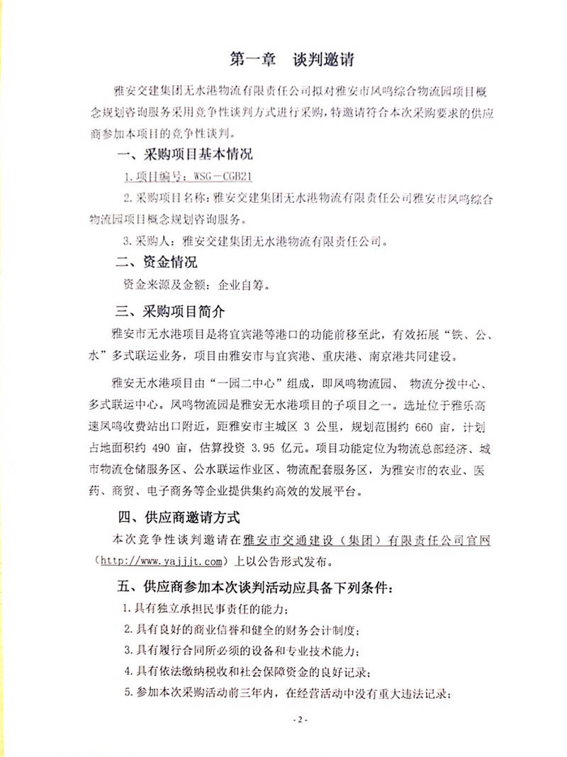 雅安交建集團(tuán)無水港物流有限責(zé)任公司雅安市鳳鳴綜合物流園項目概念規(guī)劃咨詢服務(wù)競爭性談判公告