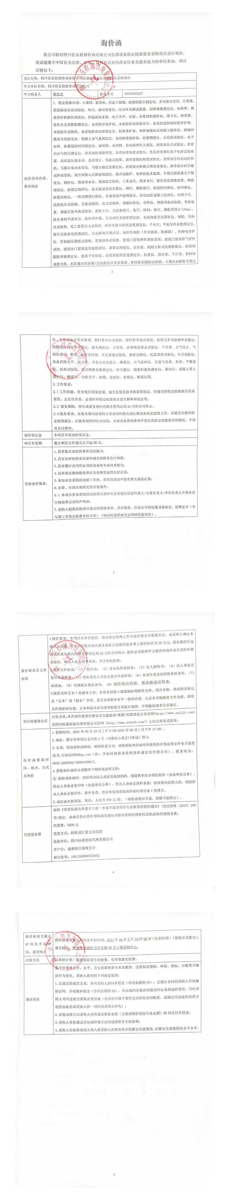 四川佳岳檢測咨詢有限公司儀器設(shè)備檢定校準(zhǔn)服務(wù)采購詢價(jià)公告