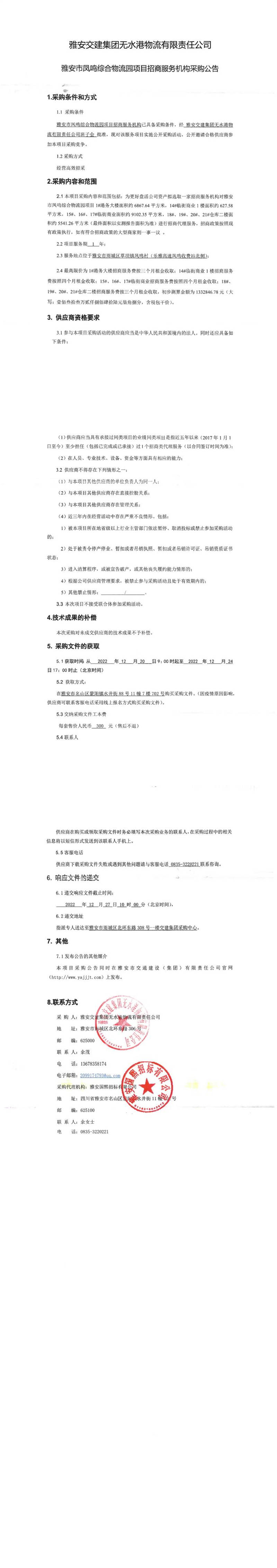 雅安交建集團(tuán)無水港物流有限責(zé)任公司雅安市鳳鳴綜合物流園項目招商服務(wù)機(jī)構(gòu)采購公告