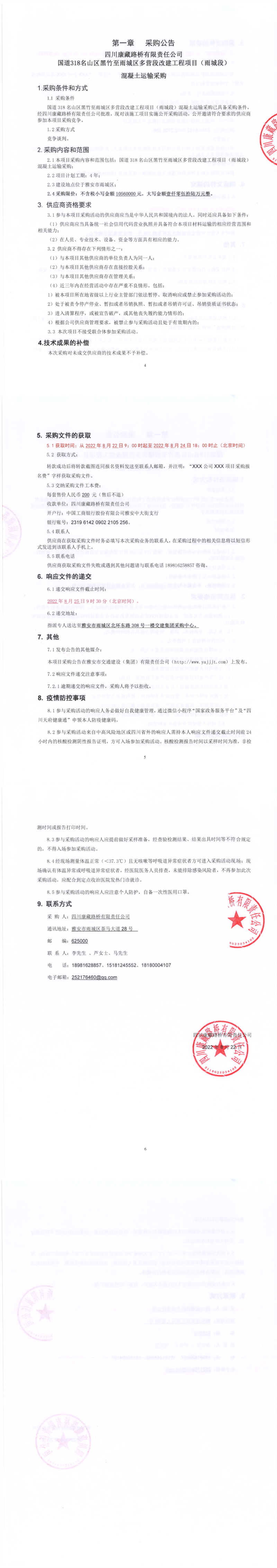 四川康藏路橋有限責(zé)任公司國道318名山區(qū)黑竹至雨城區(qū)多營段改建工程項(xiàng)目(雨城段)混凝土運(yùn)輸采購公告