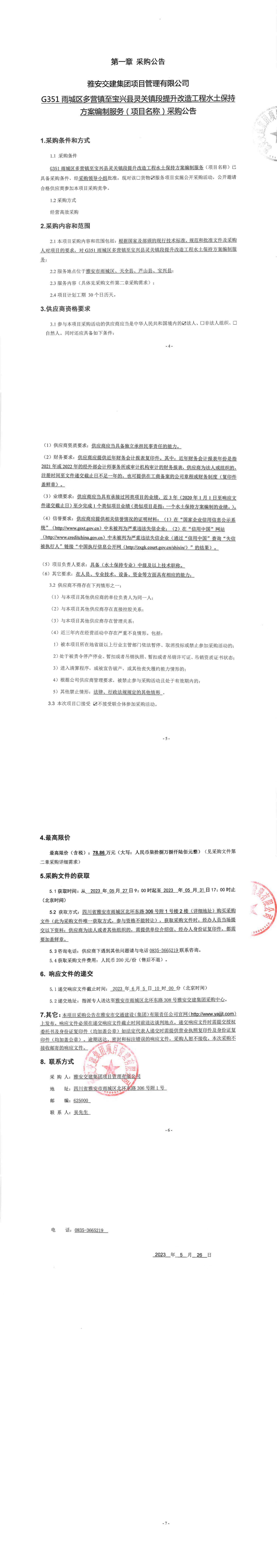 雅安交建集團(tuán)項(xiàng)目管理有限公司G351雨城區(qū)多營鎮(zhèn)至寶興縣靈關(guān)鎮(zhèn)段提升改造工程水土保持方案編制服務(wù)(項(xiàng)目名稱)采購公告