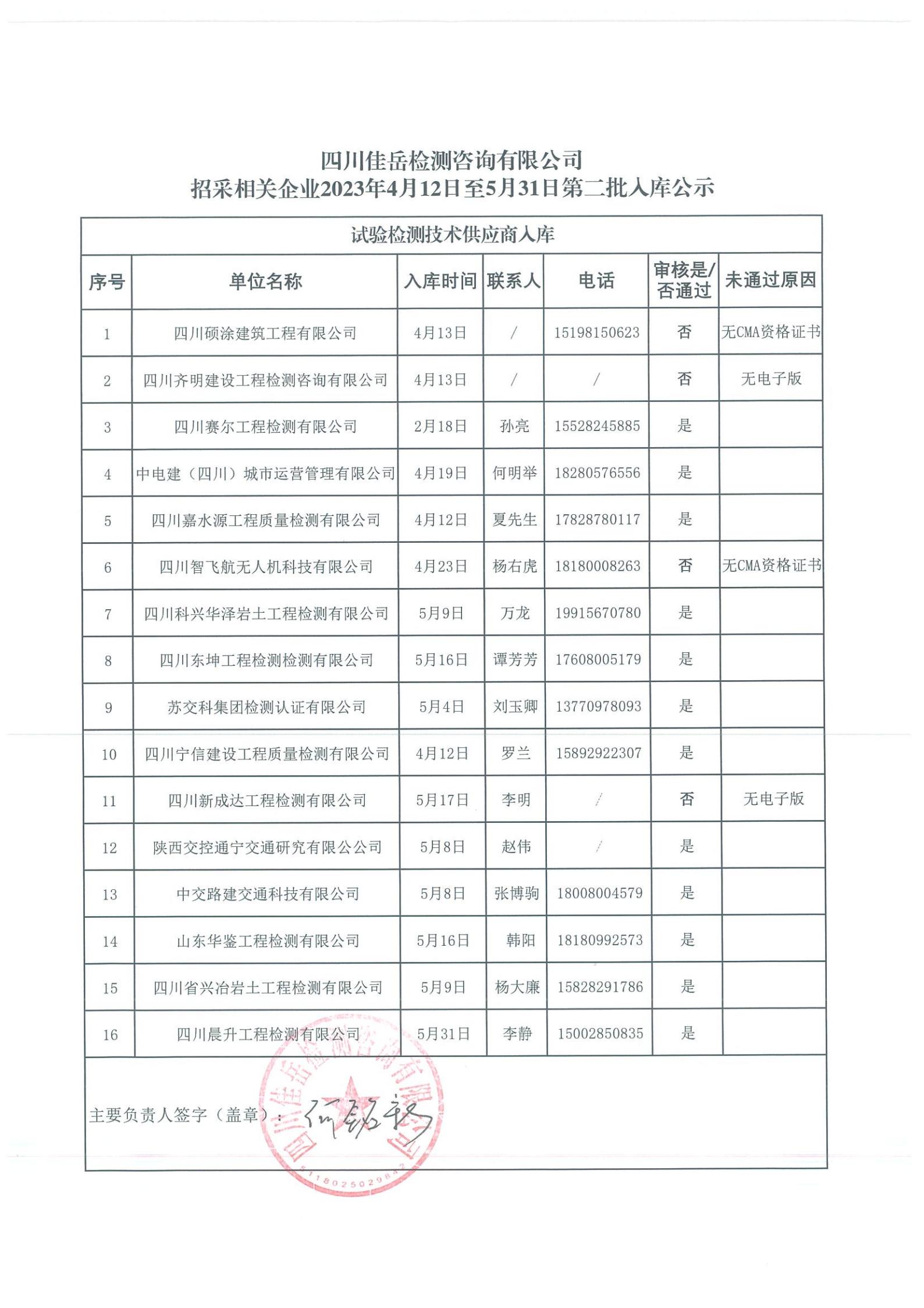 四川佳岳檢測(cè)咨詢有限公司(試驗(yàn)檢測(cè)技術(shù)供應(yīng)商庫)2023年4月12日至5月31日第二批入庫結(jié)果公示