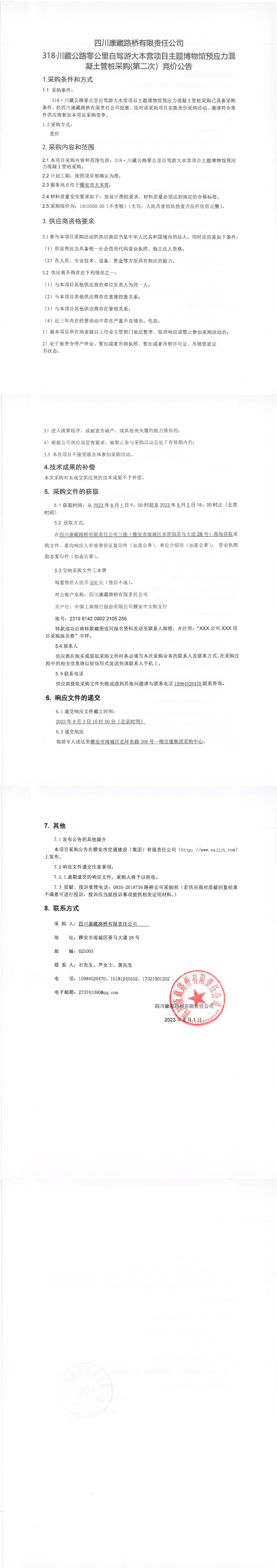四川康藏路橋有限責(zé)任公司國道318名山區(qū)黑竹(成都界)至雨城區(qū)多營段改建工程壓漿料采購公告