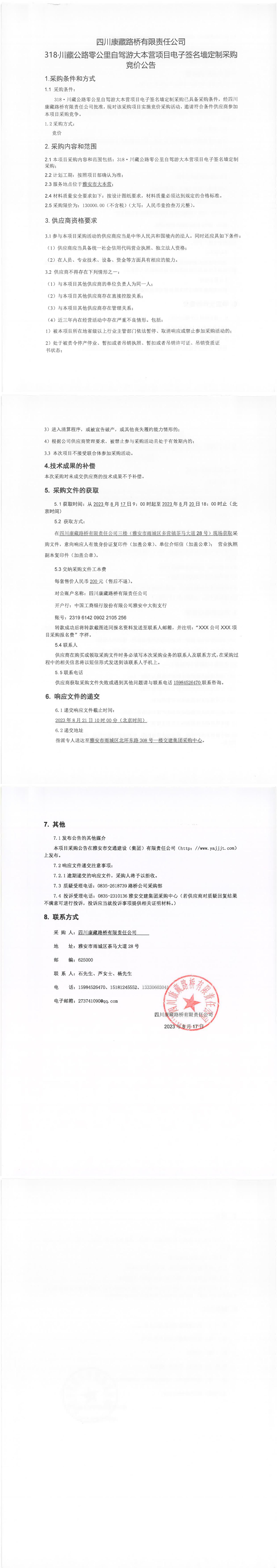 四川康藏路橋有限責(zé)任公司318·川藏公路零公里自駕游大本營(yíng)項(xiàng)目電子簽名墻定制采購競(jìng)價(jià)公告