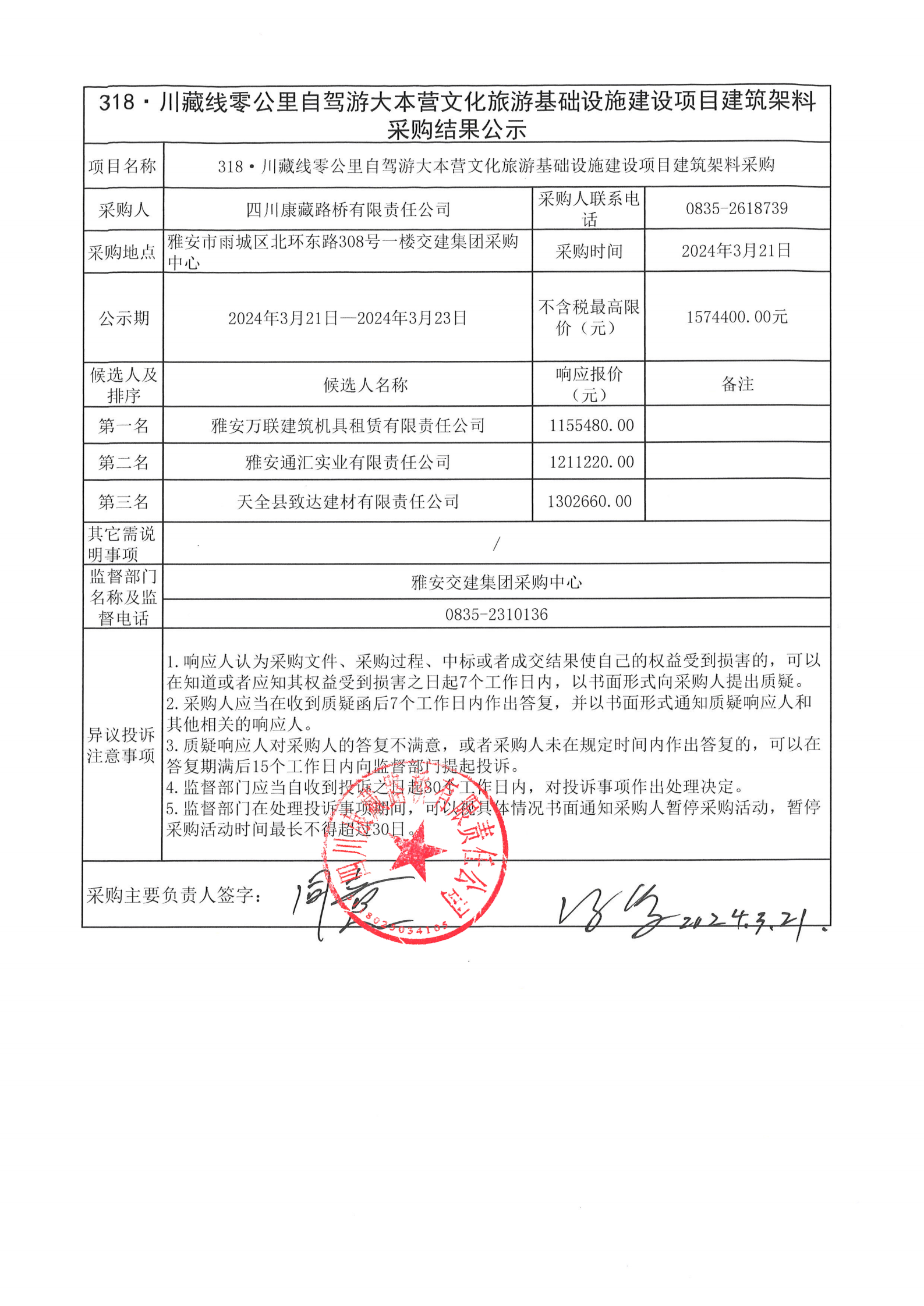 四川康藏路橋有限責(zé)任公司318·川藏線零公里自駕游大本營文化旅游基礎(chǔ)設(shè)施建設(shè)項目建筑架料租賃采購結(jié)果公示
