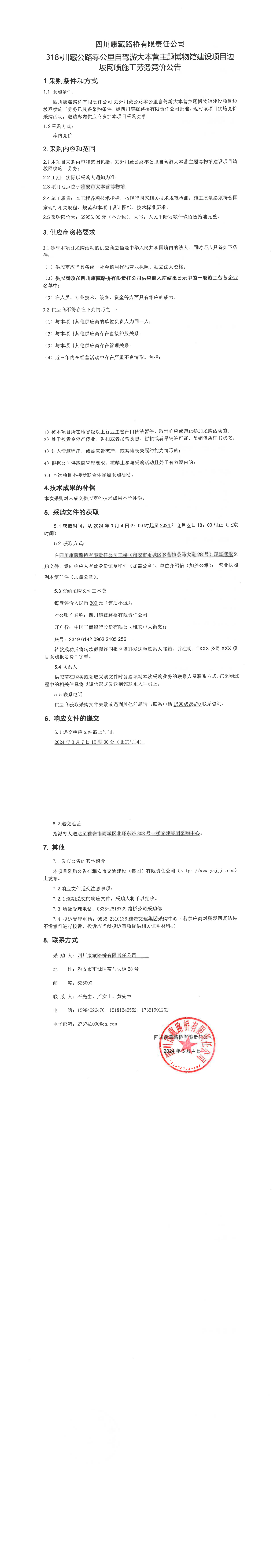 四川康藏路橋有限責任公司318·川藏公路零公里自駕游大本營主題博物館建設(shè)項目邊坡網(wǎng)噴施工勞務(wù)競價公告