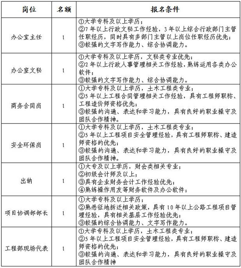 公告發(fā)布在雅安市交通建設(shè)(集團(tuán))有限責(zé)任公司網(wǎng)站,自發(fā)布之日起即可報名,截止時間為2019年 1 月6日18:00。