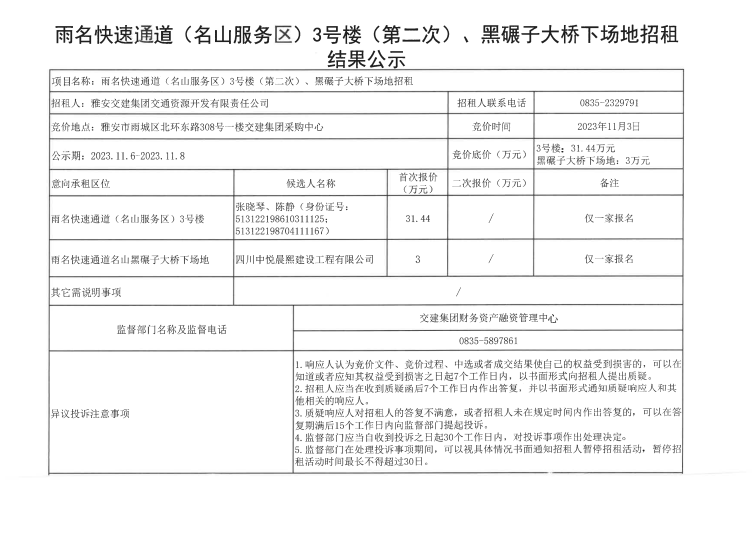 ÑŰ²½»½¨¼¯ˆF½»Í¨ÙYÔ´é_°l(f¨¡)ÓÐÏÞØŸÈι«Ë¾ÓêÃû¿ìËÙͨµÀ£¨Ãûɽ·þ„Õ…^(q¨±)£©3Ì–˜Ç£¨µÚ¶þ´Î£©ºÚÄë×Ó´ó˜òψöµØÕÐ×â½Y¹û¹«Ê¾