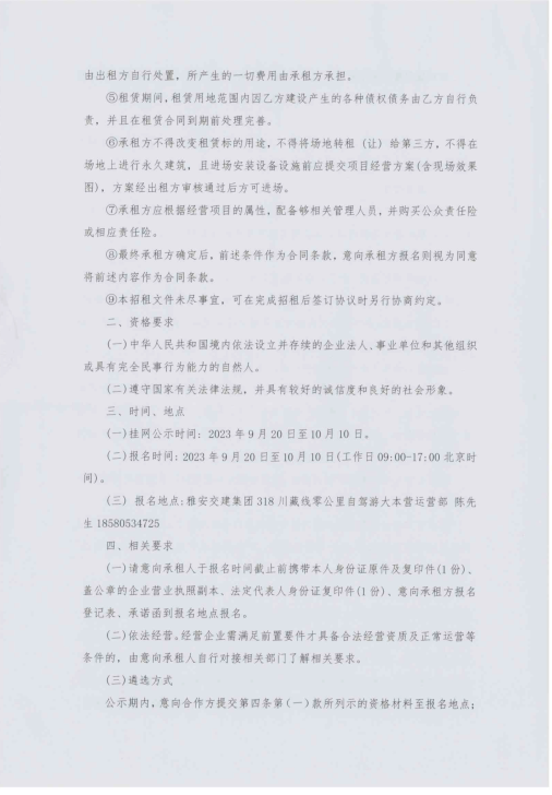 四川康藏路橋有限責任公司318·川藏線零公里自駕游大本營臨時用地臨時招租征集公告