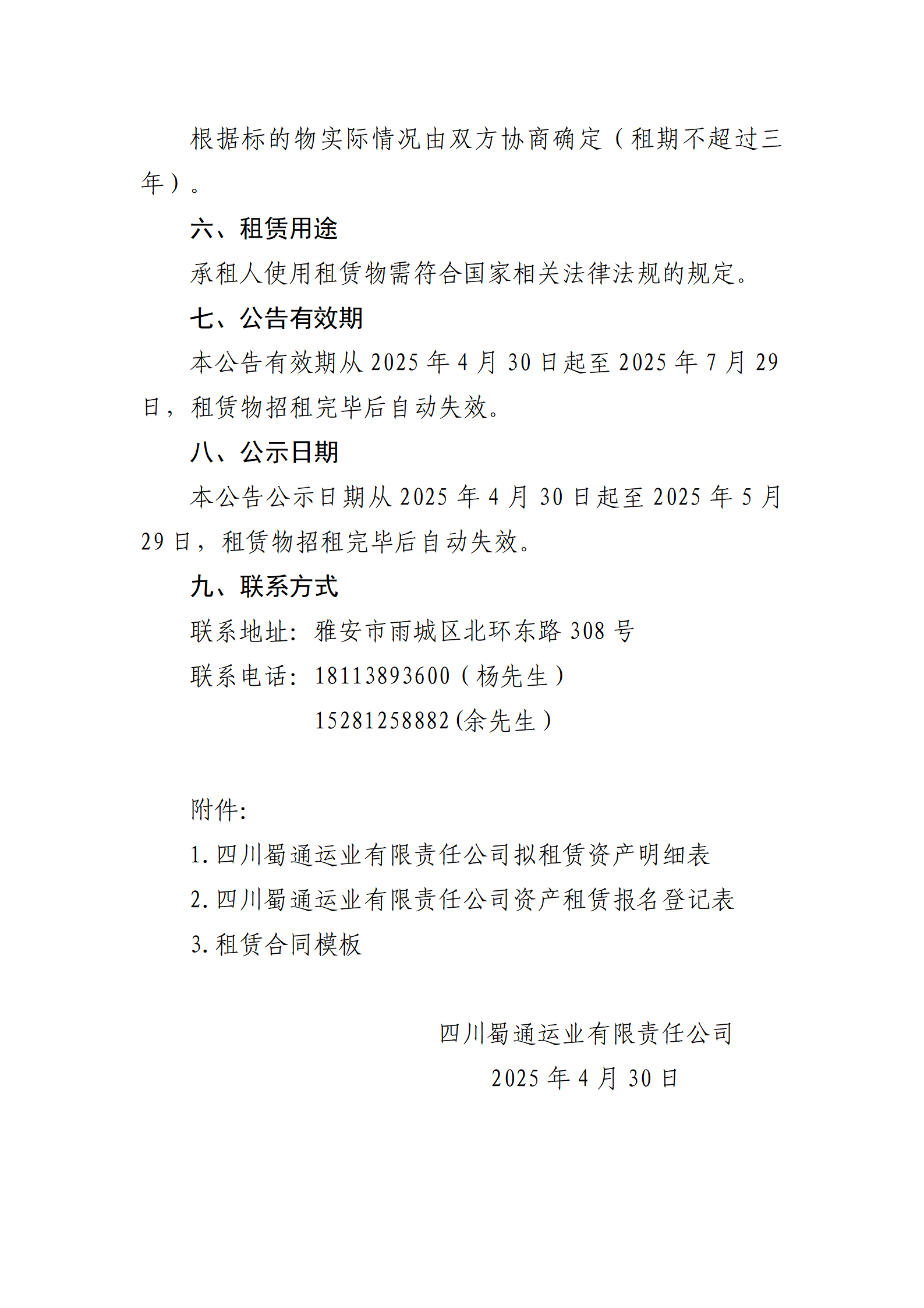 四川蜀通運(yùn)業(yè)有限責(zé)任公司 關(guān)于九襄汽車站出口右側(cè)維修車間旁邊閑置場地進(jìn)行掛網(wǎng)招租的公告