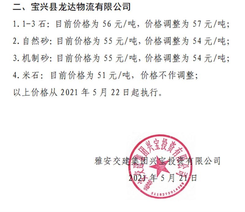 ÑŰ²½»½¨¼¯ˆFÅdŒš¹«Ë¾É°Ê¯¹ÇÁÏäNÊÛƒr¸ñÇé›r±í£¨2021.5.22£©
